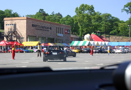 会場入りの瞬間です。SP氏にカメラを持たせて「今だ! 撮れ〜」とか命令(^^; 去年はカメラを 忘れていたので今回はいっぱい撮るのです(笑) なんか見覚えのある車が前を走ってるなぁ〜と思ったら、おやぢレーシングの皆様でした(^^; お〜M2 1001です。ナンバーも1001ですな。こういう拘りってやっぱ皆さんあるんですねぇ… しかし、車出た瞬間「おやぢレーシングだぁ」と思わずつぶやいてしまったのは失敗(^^; <失礼だったかも さっそくで満子号を囲んで、「コレ軽いHTなんだよね〜」「コレに直接値段書いてフリマに出そうよ」とか 某堂堕のしゃちょみたいな事を口々に言ってます(笑) さすがおやぢですねぇ(笑) |